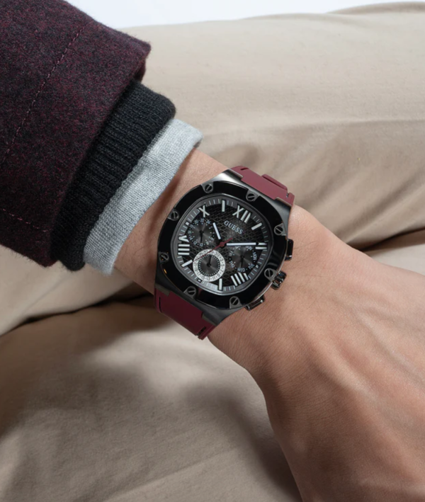 GUESS Mens Burgundy Gunmetal Multi-function Watch