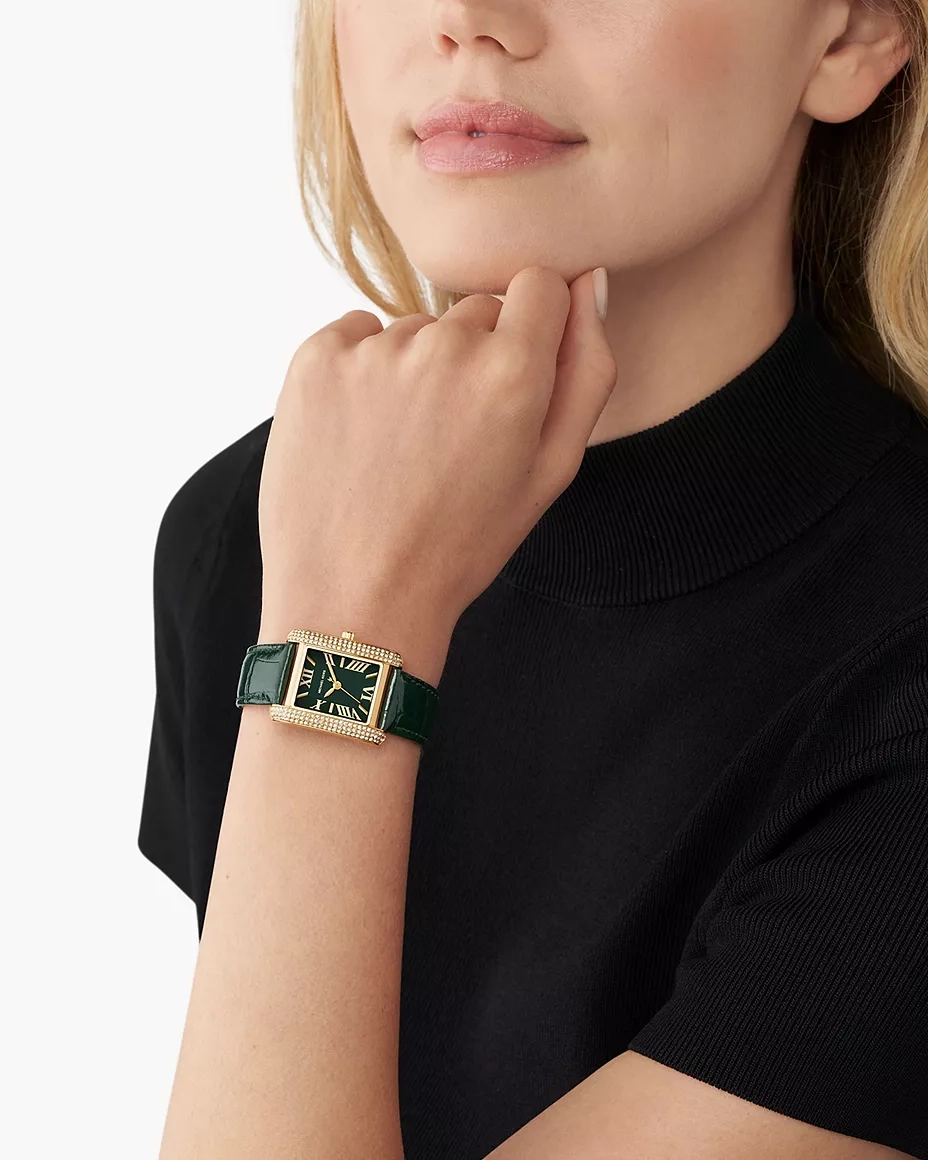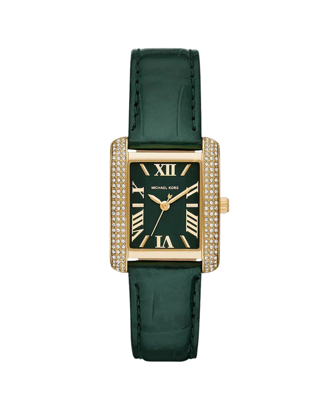 Apportez une touche de raffinement à votre poignet avec la montre Michael Kors EMERY. Son design élégant associe un cadran épuré à un boîtier en acier inoxydable finition rose doré, sublimé par un bracelet en cuir façon croco vert royal. Une montre idéale pour un style moderne, chic et sophistiqué.