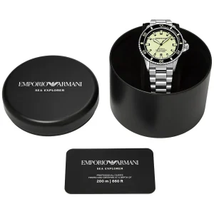 La montre Emporio Armani AR60083 pour homme, issue de la collection Sea Explorer, est un modèle audacieux et sophistiqué. Son cadran jaune vibrant attire le regard et se distingue par son style unique, parfait pour les hommes au Maroc recherchant une montre de luxe originale et fonctionnelle.