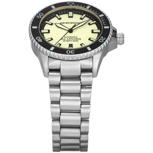 Conçue avec un bracelet en acier inoxydable argenté et un mouvement automatique, cette montre allie confort, robustesse et précision. Son étanchéité jusqu’à 200 mètres la rend adaptée aux activités nautiques et à un usage quotidien à Casablanca et dans tout le Maroc.