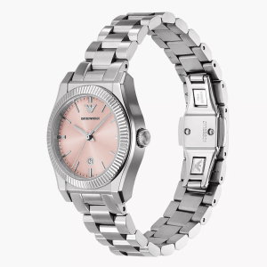 La montre femme Emporio Armani AR11658, disponible chez Belvani, incarne la douceur et l’élégance avec son cadran rose délicat associé à un bracelet en acier inoxydable argenté. Ce mélange harmonieux offre un style féminin, moderne et facile à porter au quotidien comme lors d’occasions spéciales.