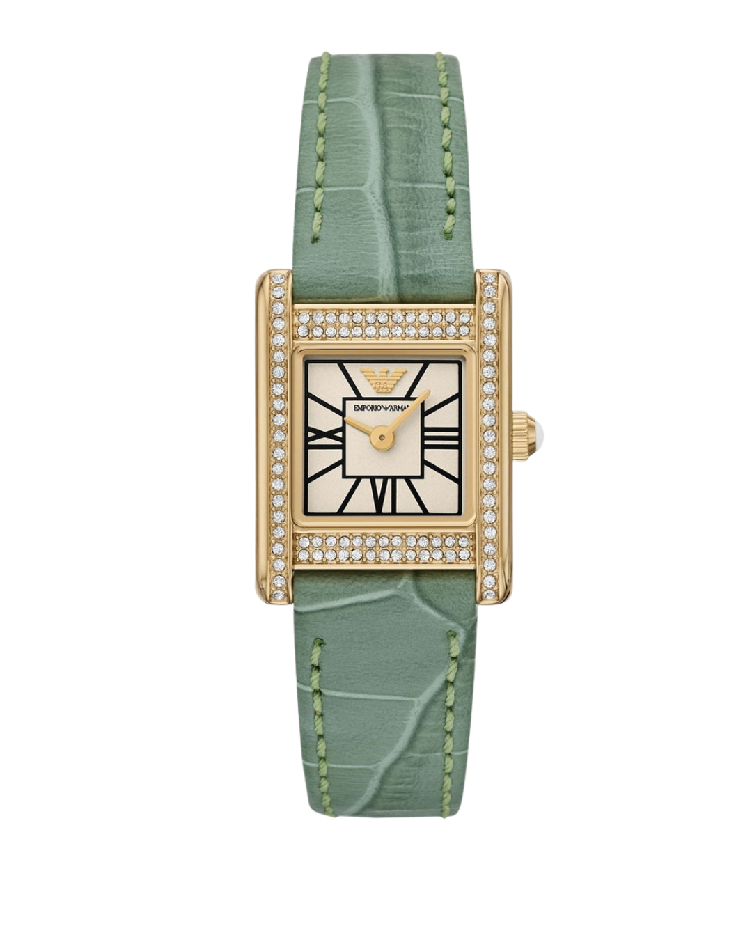 La montre femme Emporio Armani AR11661 Ganni, disponible chez Belvani, combine élégance et modernité dans un design carré compact. Son cadran blanc lumineux se marie parfaitement avec un bracelet en cuir vert véritable, apportant une touche originale et sophistiquée à votre style. Avec un boîtier de 20 mm et une épaisseur ultra-fine de 4 mm, cette montre légère est idéale pour un confort quotidien tout en restant chic et raffinée.