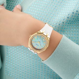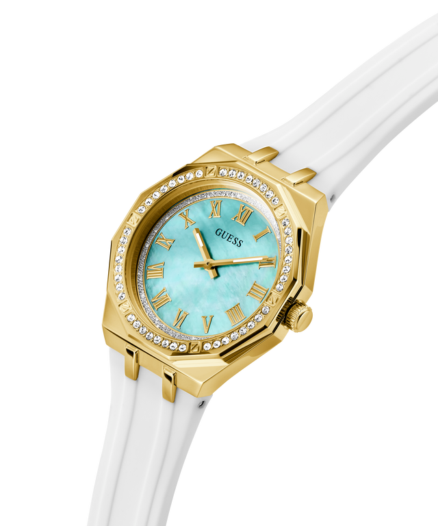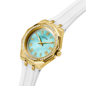 La montre Guess Desire GW0872L1 est un modèle féminin au style frais et moderne, parfait pour les femmes qui aiment les couleurs tendance. Son cadran turquoise éclatant associé à un bracelet blanc en caoutchouc crée un look dynamique et élégant.