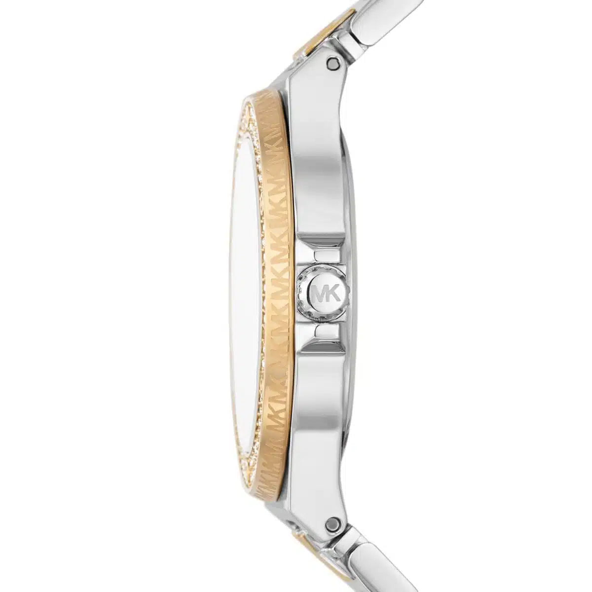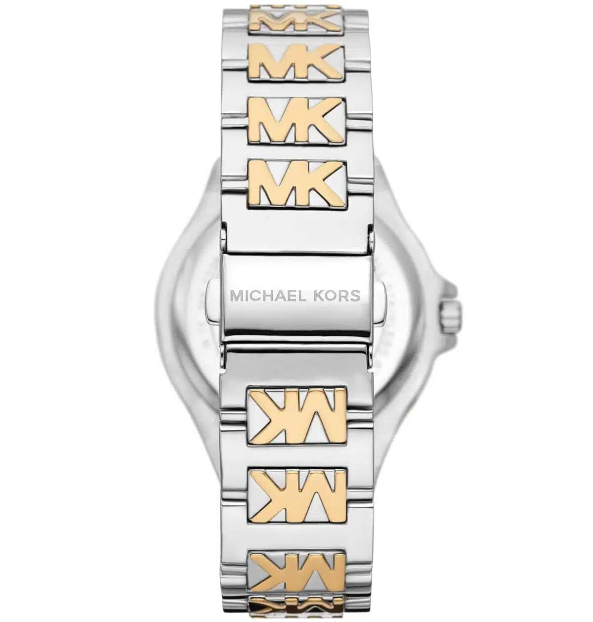 La montre Michael Kors Lennox MK7338 pour femme allie élégance et fonctionnalité. Son boîtier rond argenté de 37 mm et son bracelet en acier inoxydable bicolore (or et argent) offrent un style raffiné et moderne. Cette montre analogique à quartz, équipée d’un chronomètre, est idéale pour un usage quotidien ou pour compléter vos tenues lors d’occasions spéciales. Résistante à l’eau jusqu’à 10 mètres, elle combine design sophistiqué et praticité.