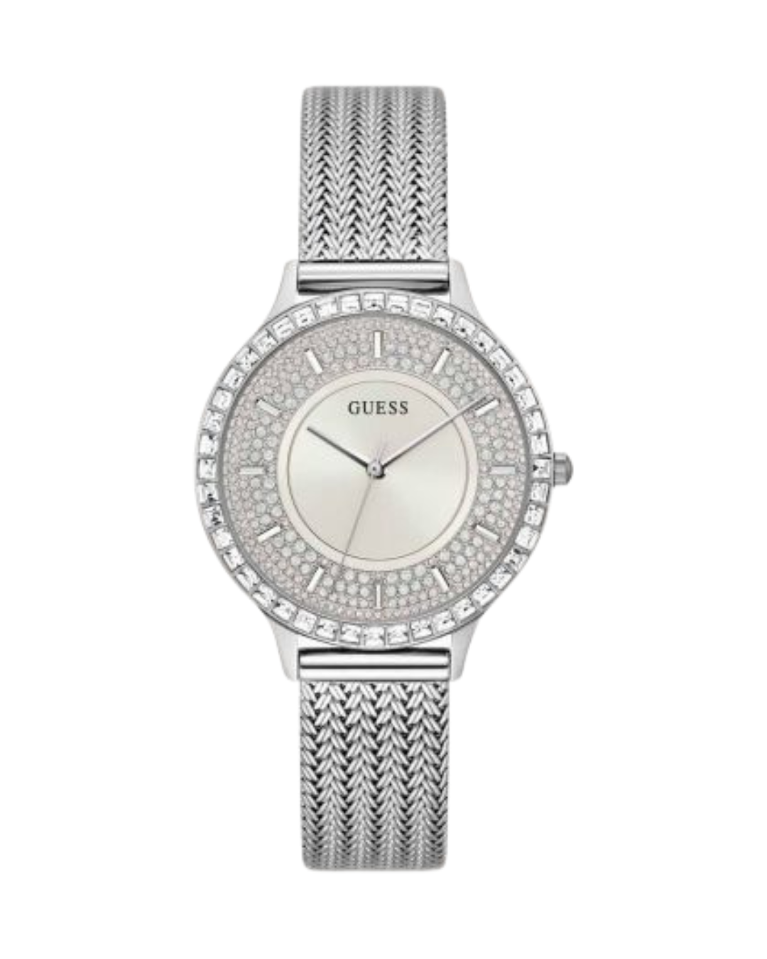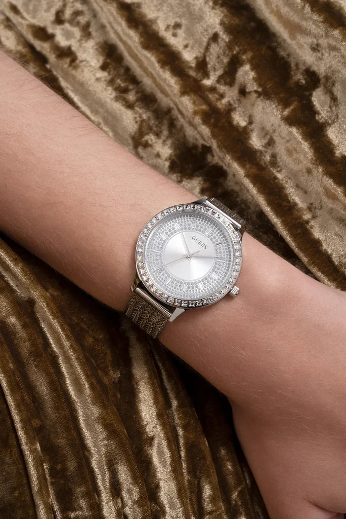 La montre Guess GW0402L1 issue de la collection Soirée reflète une élégance moderne et raffinée. Son design argenté, associé à un bracelet en maille fine, apporte une touche sophistiquée. Elle s’adapte parfaitement aux tenues quotidiennes comme aux occasions habillées.