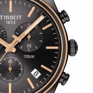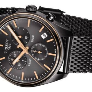 Affirmez votre style avec la Tissot T Classic PR 100, un chronographe moderne qui allie précision suisse, design épuré et grande durabilité. Son cadran noir anthracite et son bracelet en maille noire en acier inoxydable en font un modèle parfaitement adapté aussi bien au quotidien qu’aux occasions formelles.